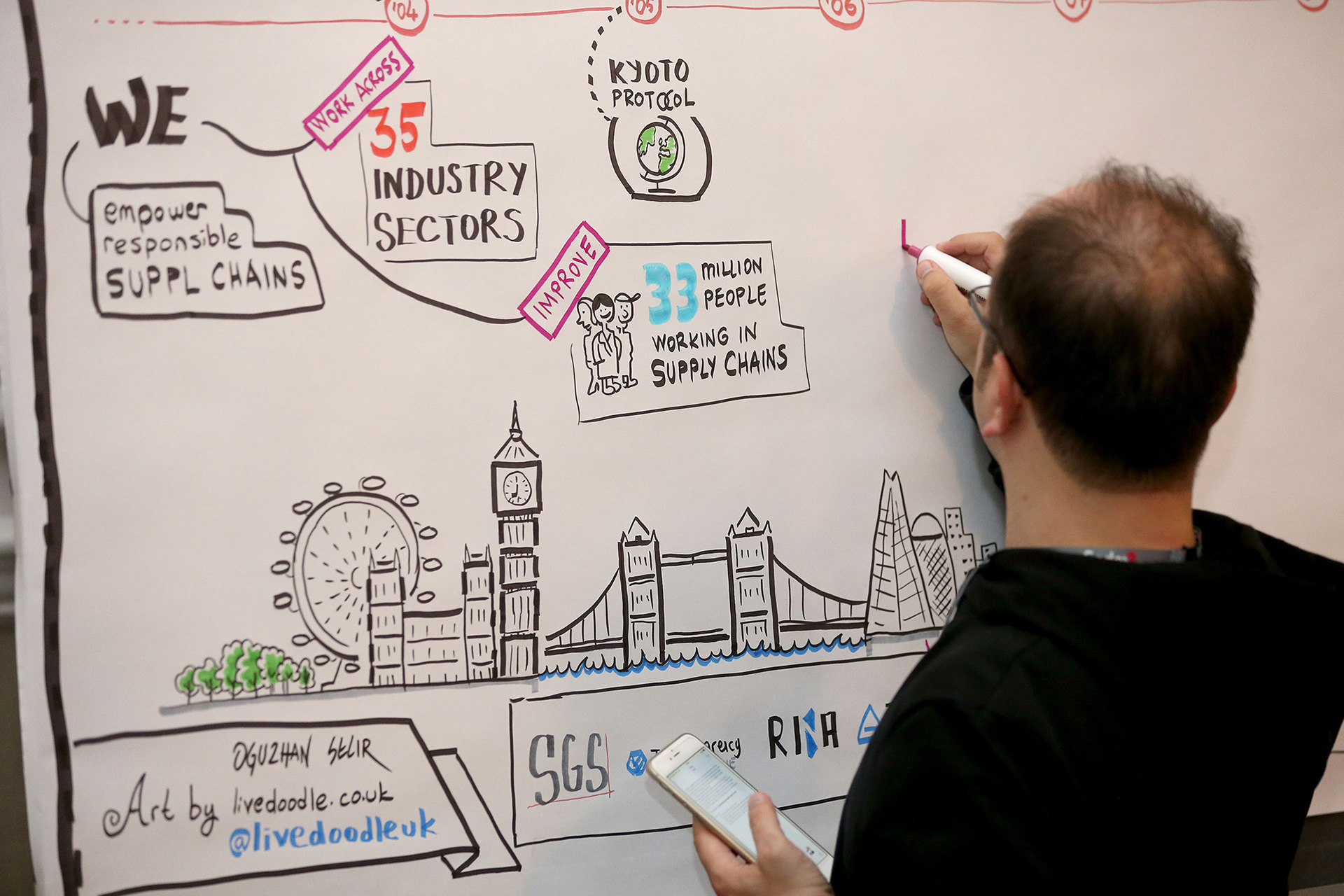 BBC News Presenter Martine Croxall visited my Sedex Conference 2019 live scribe wall.